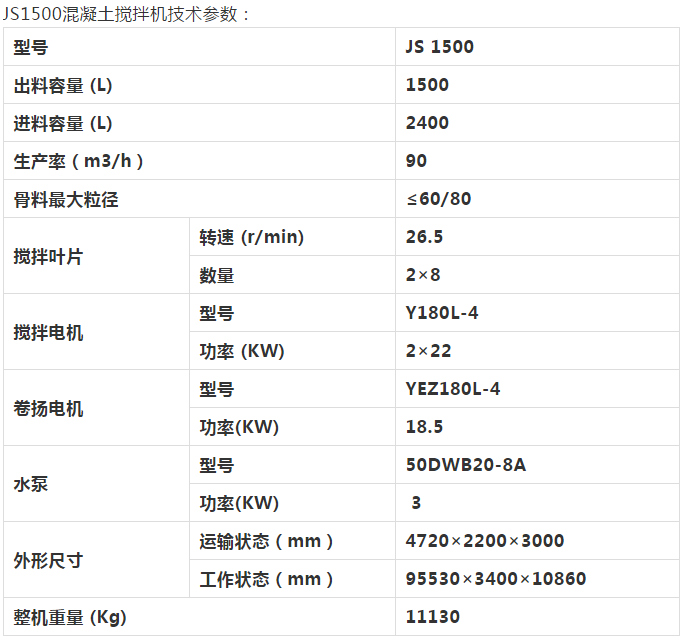 JS1500混凝土攪拌機是目前國內外先進、理想的機型,具有自動化程度高、攪拌質量好、效率高、能耗低、噪音小、操作方便、卸料速度快、襯板及葉片使用壽命長,維修保養方便等優點。適用于塑性、干硬性、輕骨料混凝土及各種灰漿、砂漿的攪拌。本機采用機動出料,能與翻斗車配套使用,是各種建筑工地的理想機具。